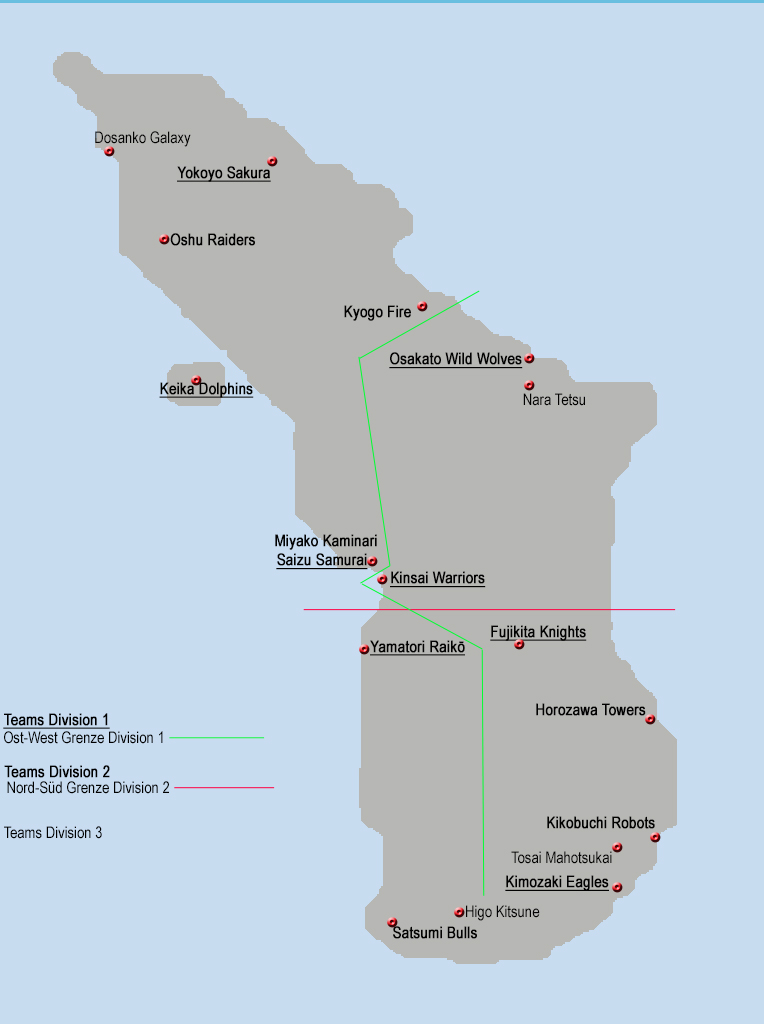 In der ersten Saison wird die Einteilung der Division 1 West/Ost sein und in der Division 2 in Nord/Süd.